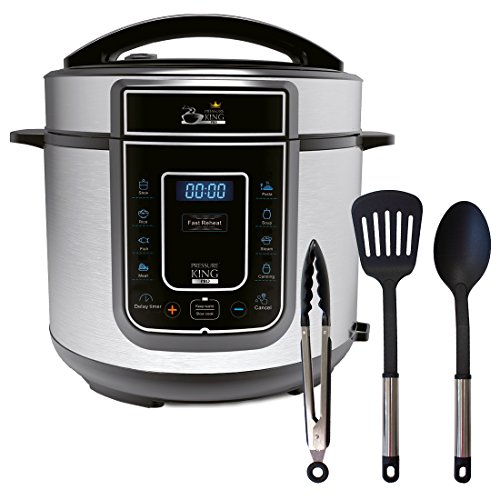 [ln] 12-in-1 Digital Pressure Cooker creates delicious, hearty, home-cooked meals up to 90% faster than traditional cooking methods for slow-cooked taste in fast food time. [ln] [ln]- [ln] Not just a pressure cooker, the Pressure King Pro can be used for Sautéing/Browning, and as a Slow Cooker, Steamer and Warmer. Also features 24-hour delay timer - simply set it in the morning. [ln] [ln]